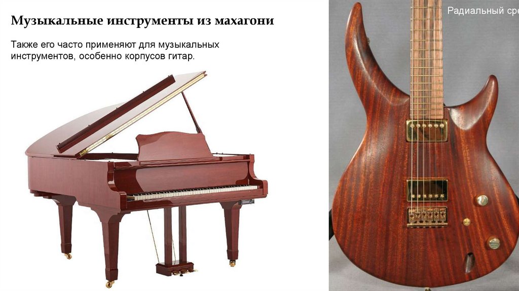 Музыкальные инструменты из махагониТакже его часто применяют для музыкальных