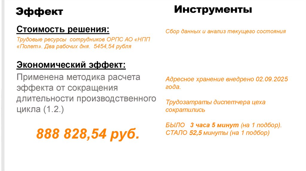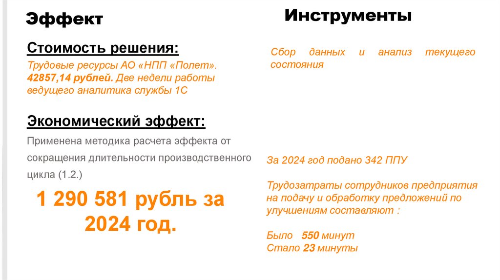 улучшениям составляют до 550 минут (на одно ППУ). Эффективность процесса 1,8%