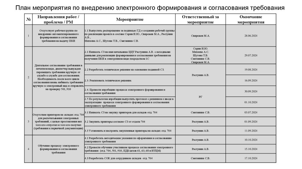 требования (отд. 704, 501, 910, ПДБ цехов 61, 63, 68 и НТЦМ)