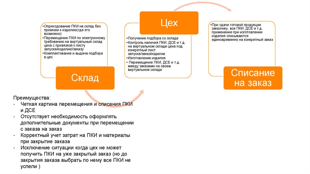 •Оприходование ПКИ на склад безпривязки к изделию(где это
