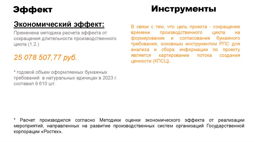 * Расчет производился согласно Методики оценки экономического эффекта от реализации