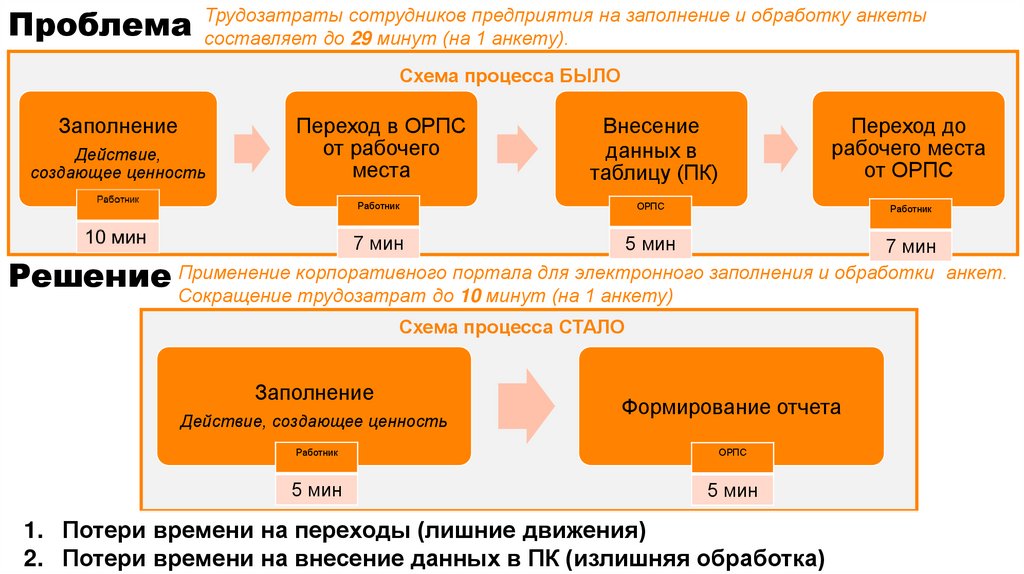сотрудников предприятия на заполнение и обработку анкетыПроблема Трудозатраты