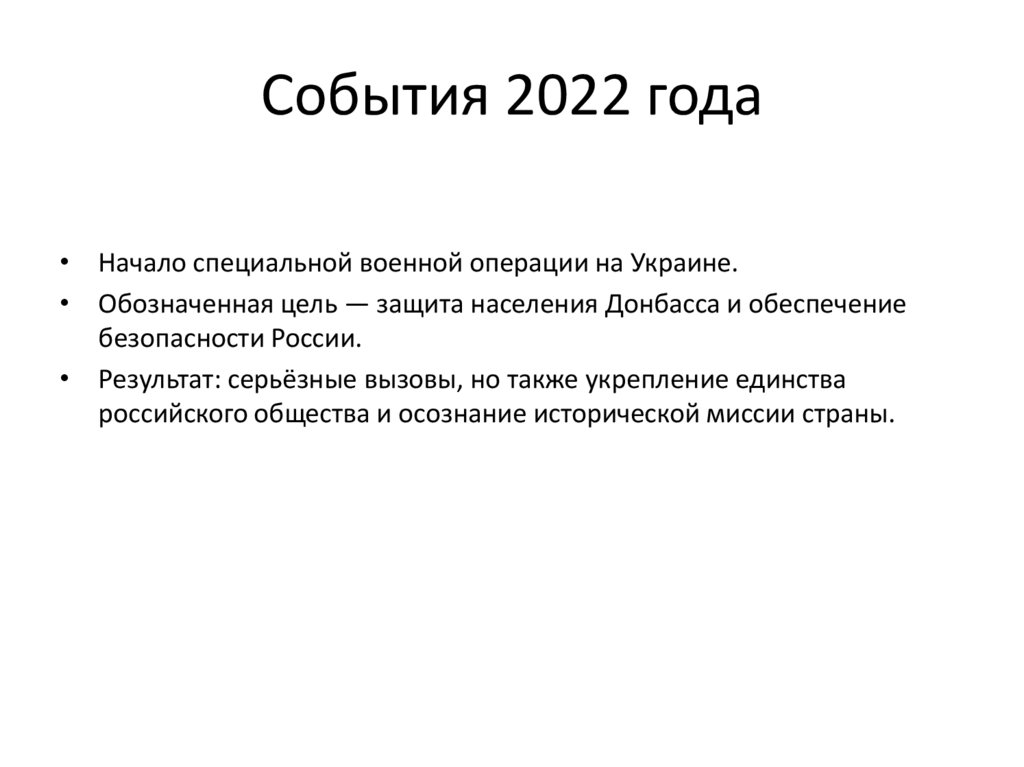 • 2014 год: возвращение Крыма в состав России после референдума.