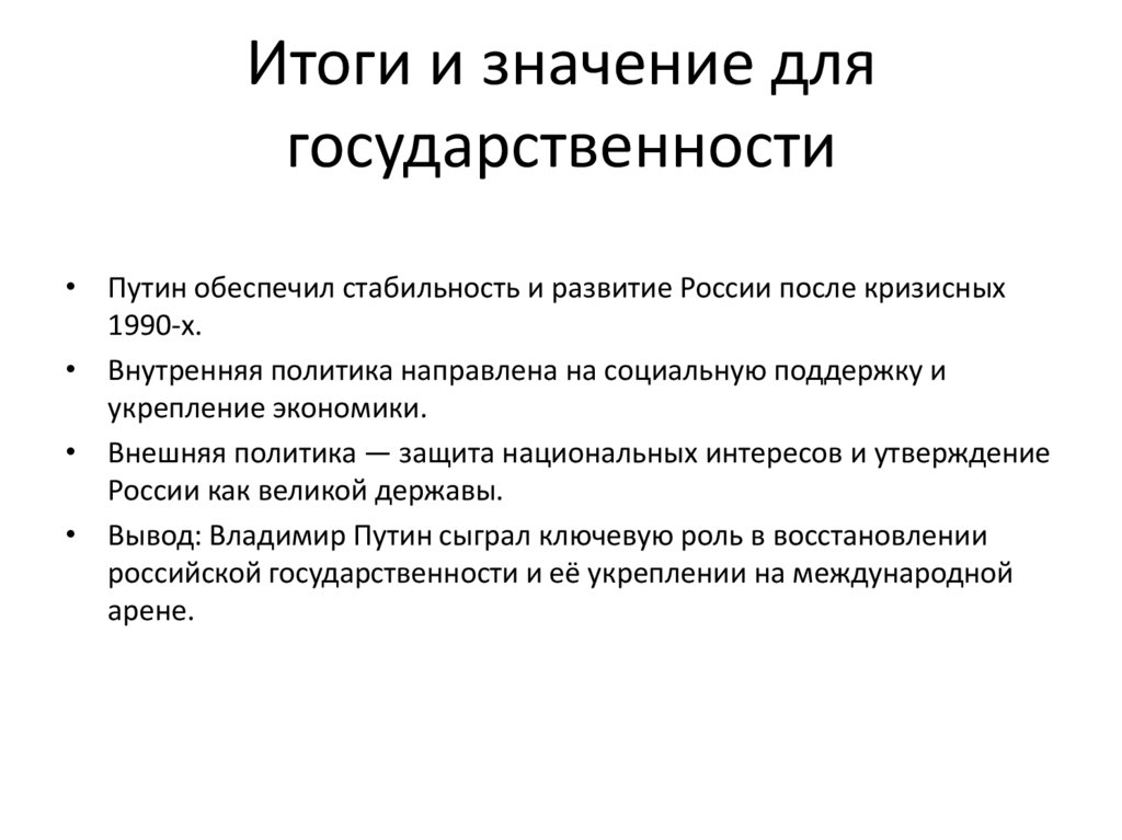 • Вывод: Владимир Путин сыграл ключевую роль в восстановлении