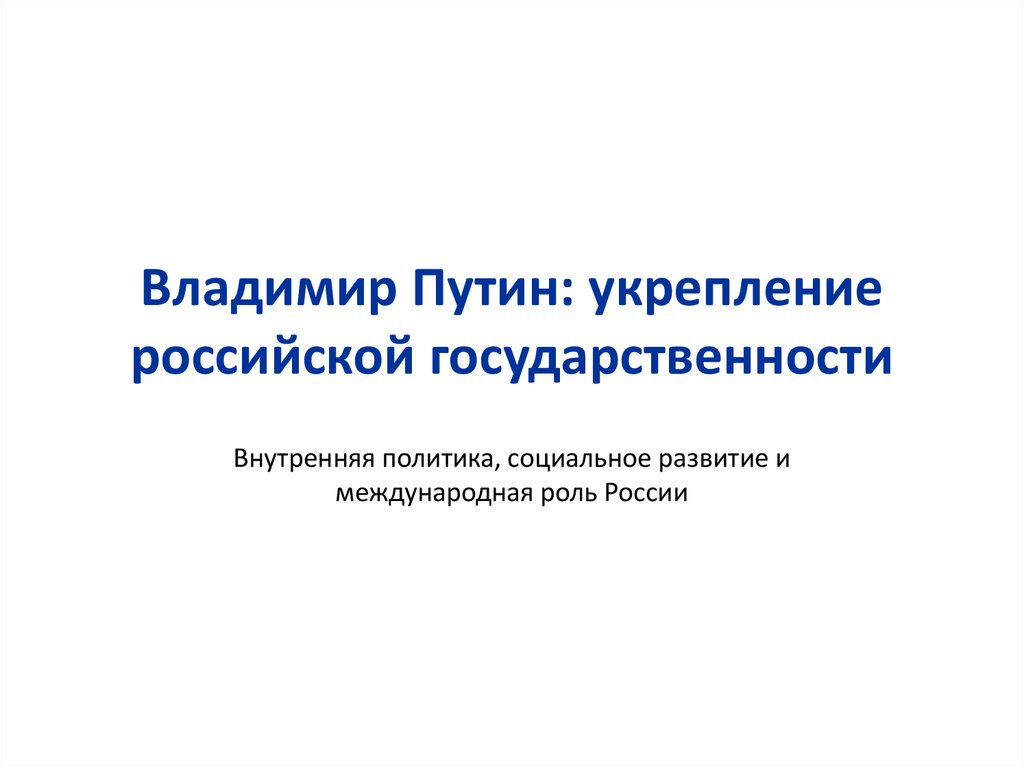 Владимир Путин: укреплениероссийской государственности