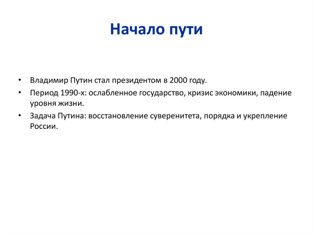 Начало пути• Владимир Путин стал президентом в 2000 году.