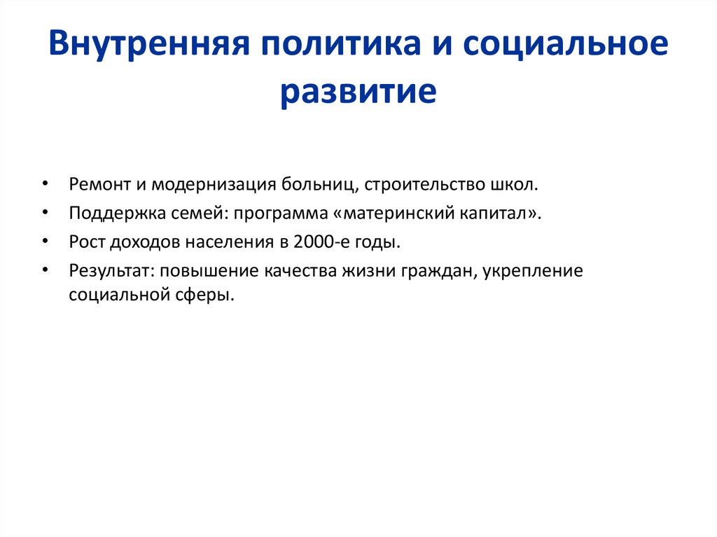 Внутренняя политика, социальное развитие и