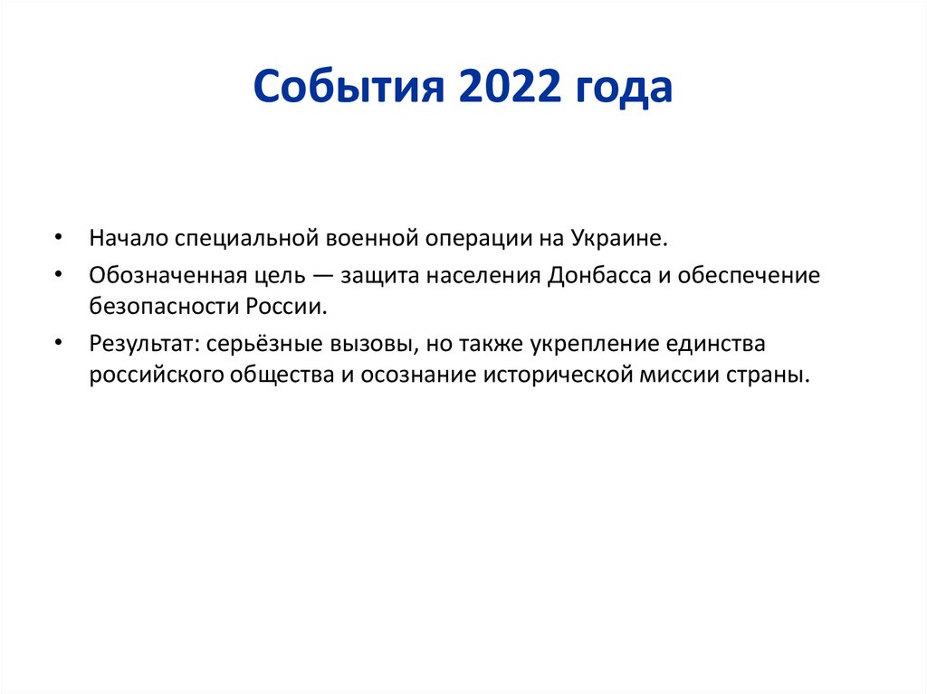 События 2022 года• Начало специальной военной операции на Украине.