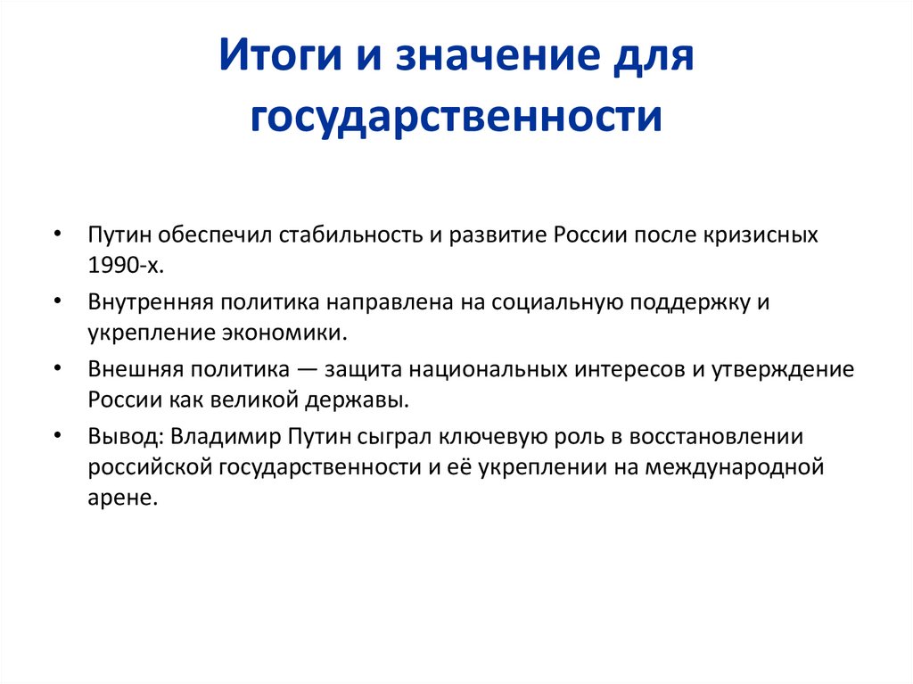 • Вывод: Владимир Путин сыграл ключевую роль в восстановлении