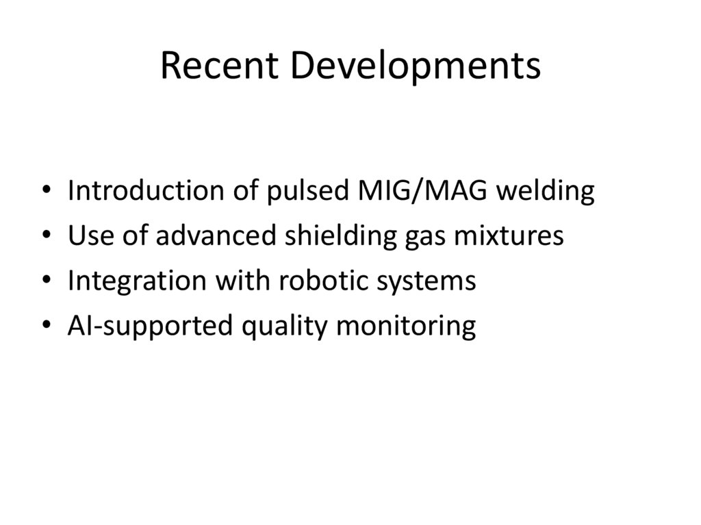 Recent Developments• Introduction of pulsed MIG/MAG welding