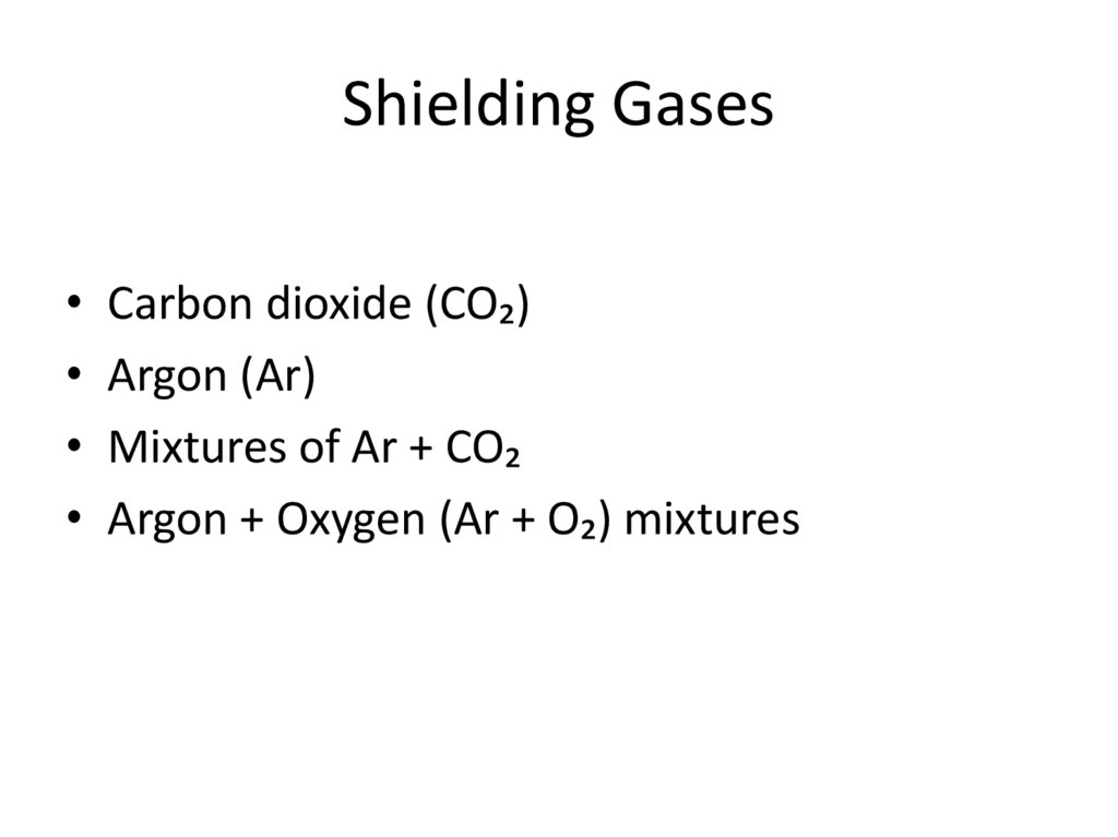 Shielding Gases• Carbon dioxide (CO₂)