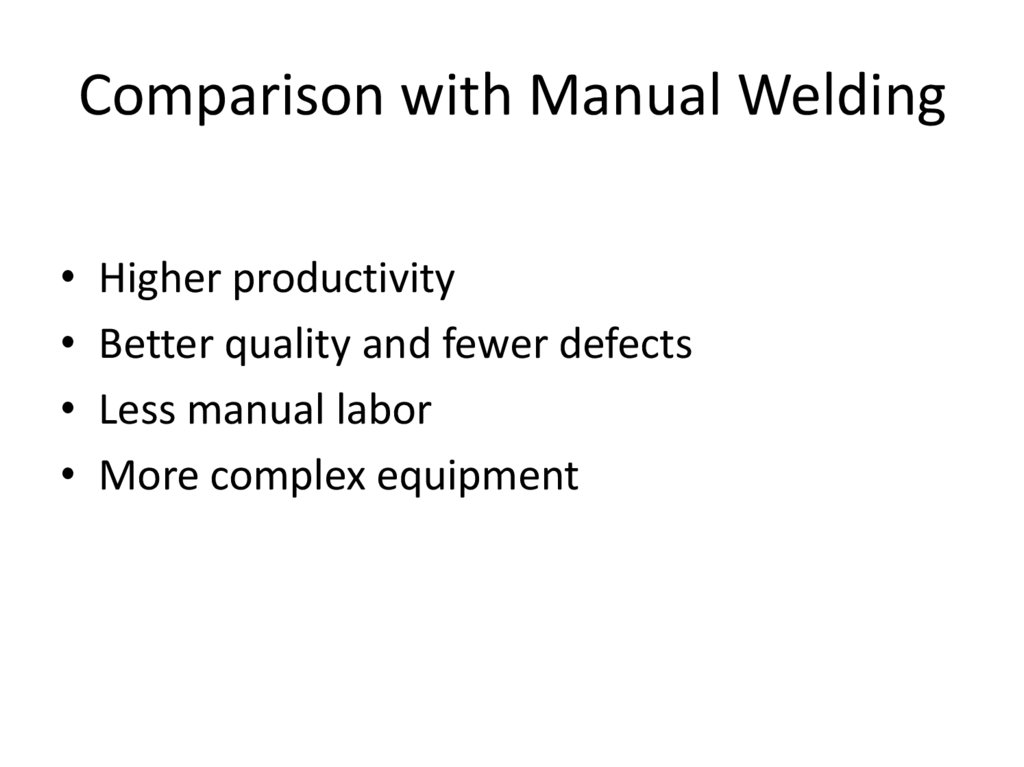Comparison with Manual Welding• Higher productivity