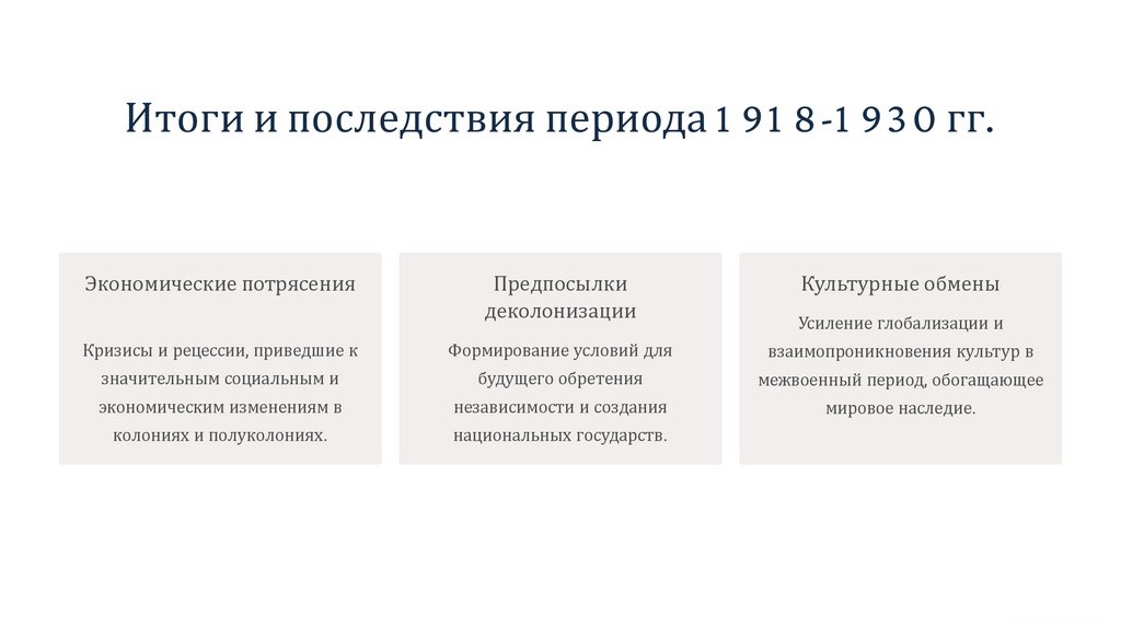 Итоги и последствия периода 1 91 8-1 93 0 гг.Экономические потрясения