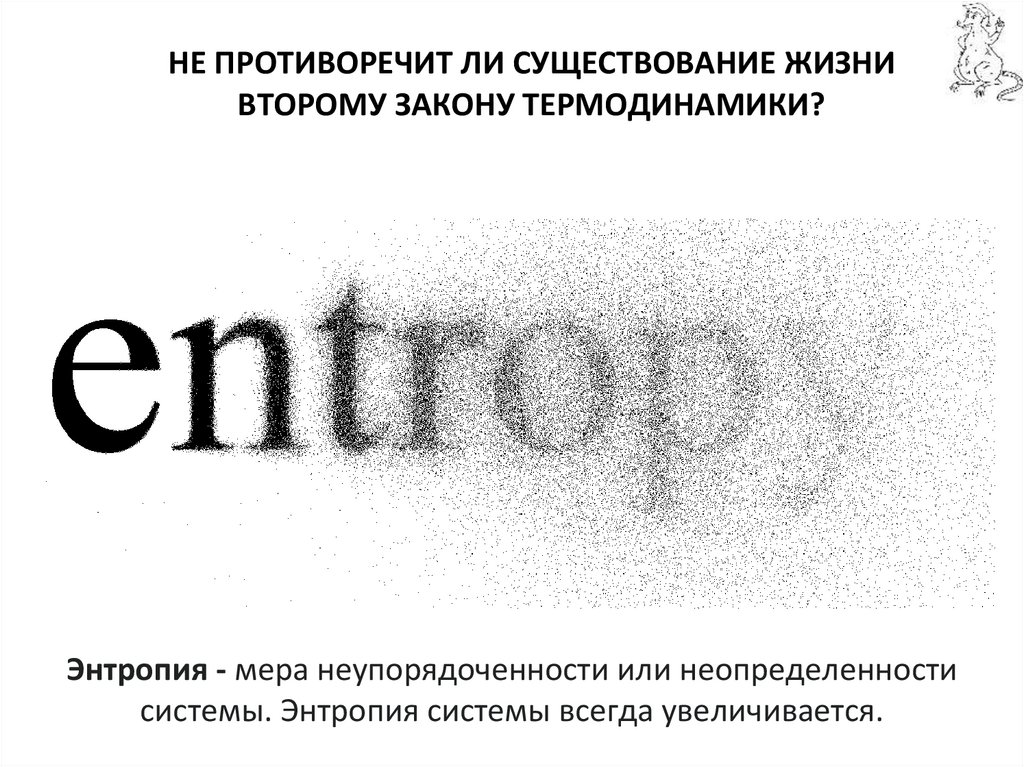 НЕ ПРОТИВОРЕЧИТ ЛИ СУЩЕСТВОВАНИЕ ЖИЗНИВТОРОМУ ЗАКОНУ ТЕРМОДИНАМИКИ?
