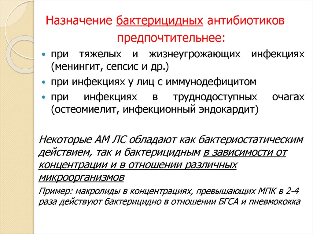 Лечение системных инфекций(резорбтивное действие при энтеральном и