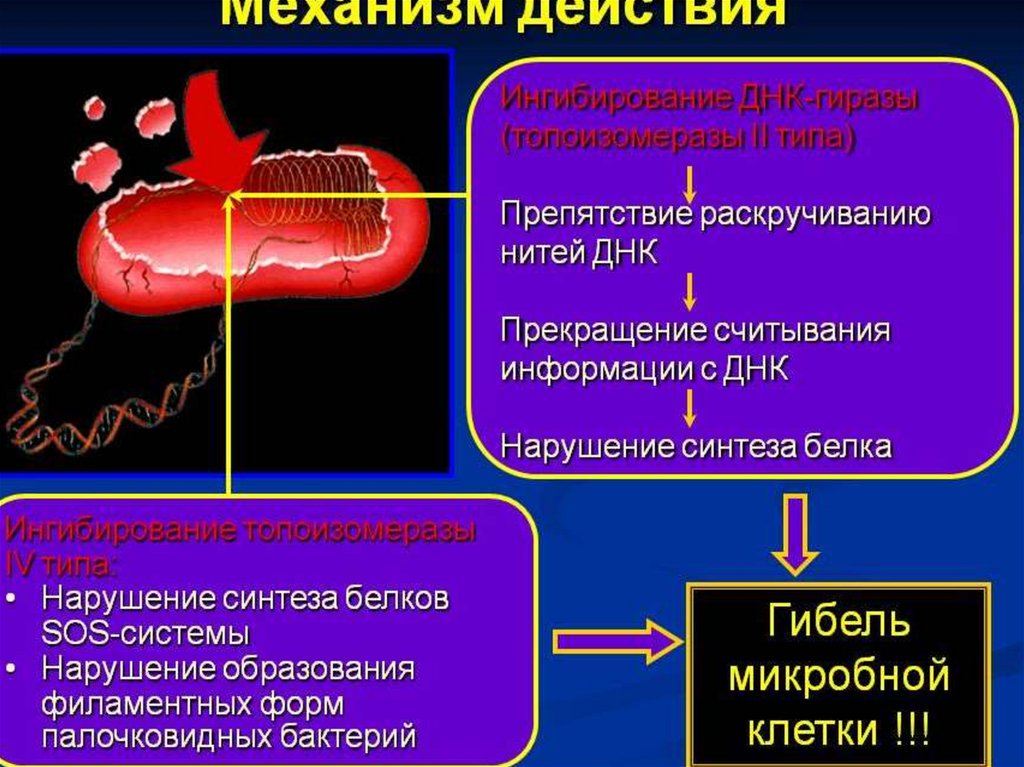 Действуют на ДНК микроорганизма,