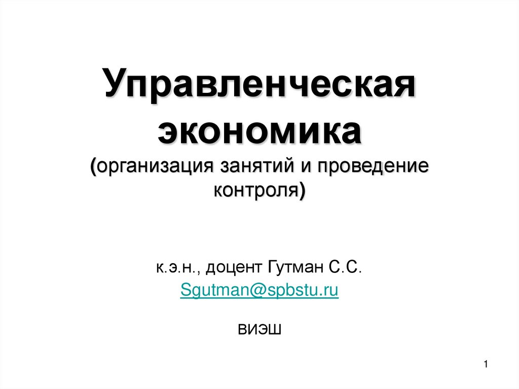 1. Управленческая экономика (организация занятий и проведение контроля)