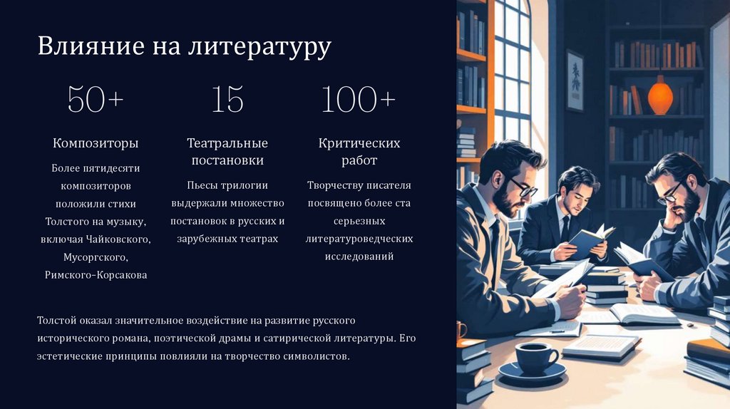 Толстой оказал значительное воздействие на развитие русского