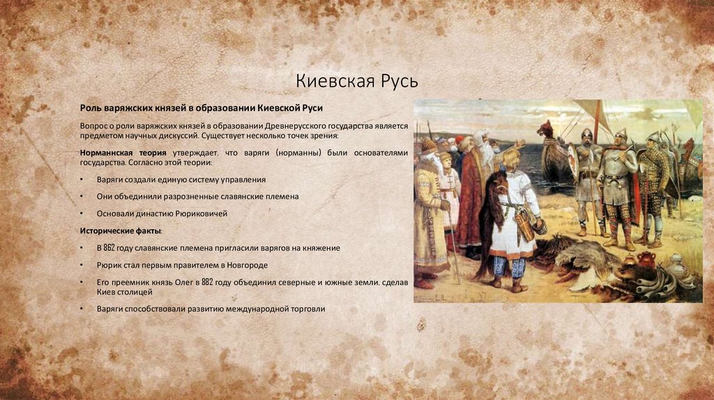 Роль варяжских князей в образовании Киевской РусиВопрос о роли варяжских князей в образовании Древнерусского государства является