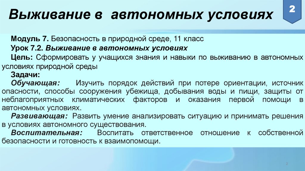 2Выживание в автономных условиях