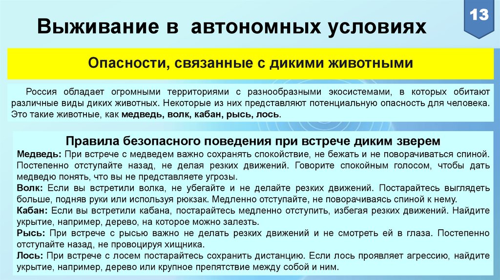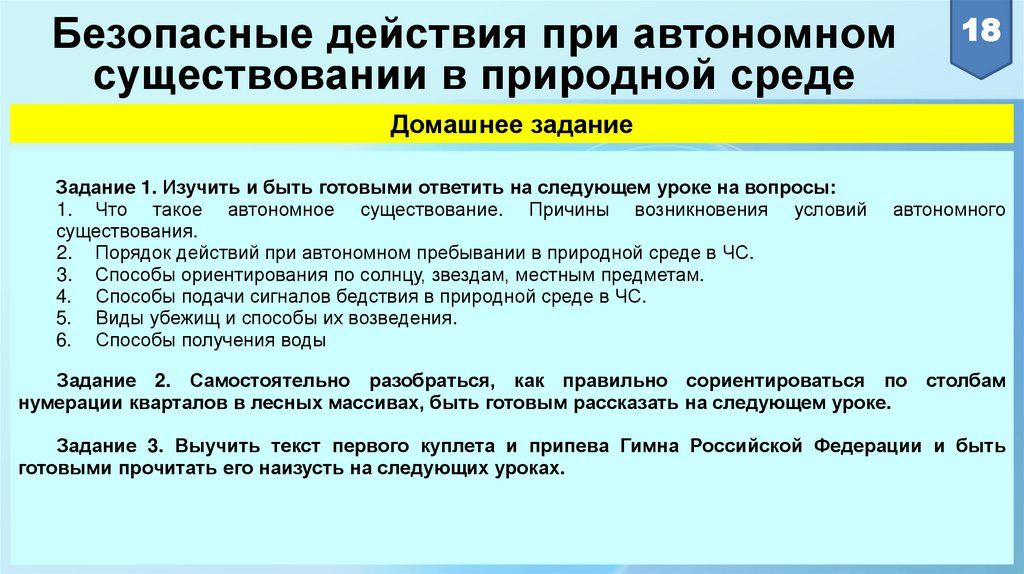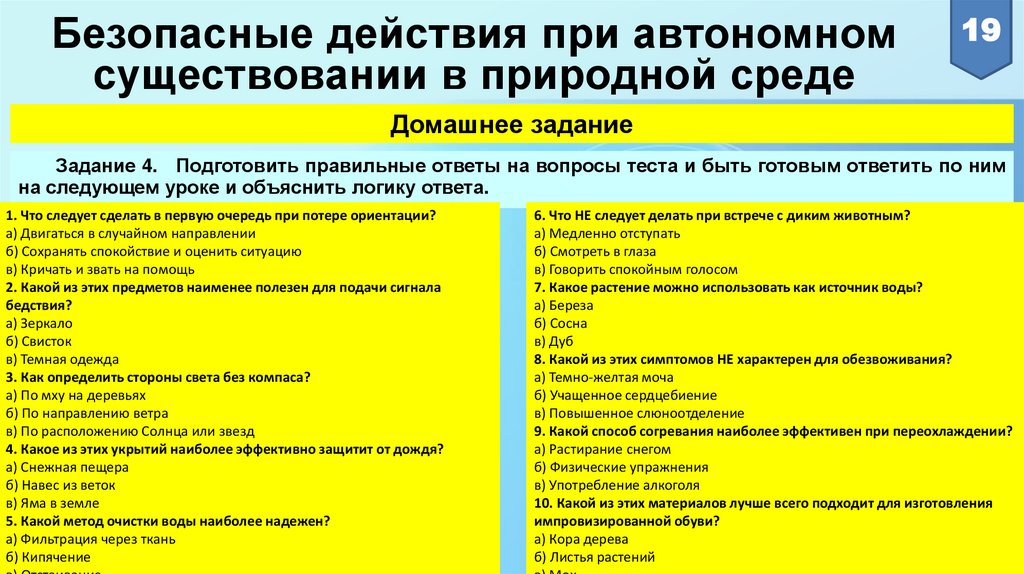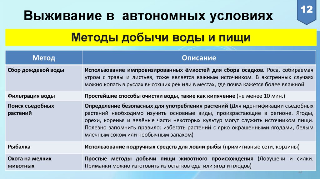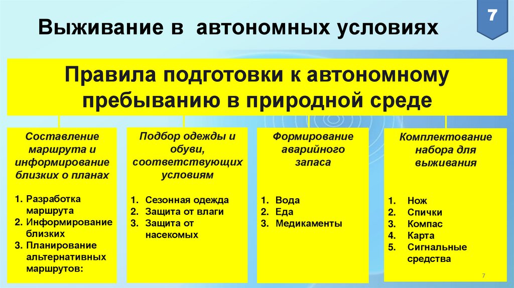 Безопасные действия при автономномсуществовании в природной среде