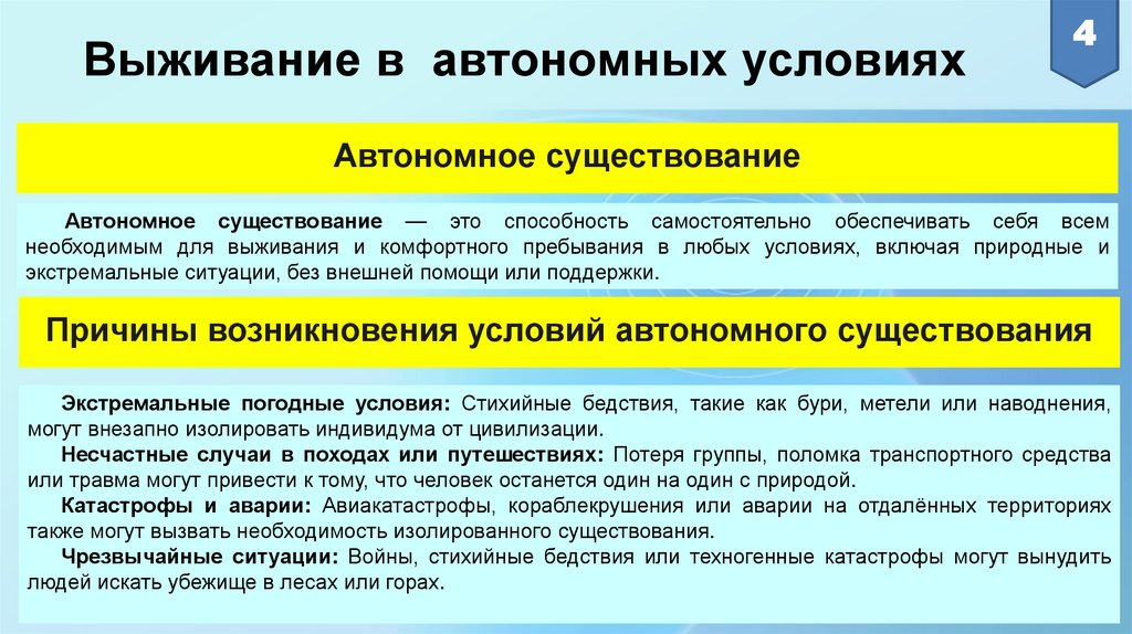 4Выживание в автономных условиях