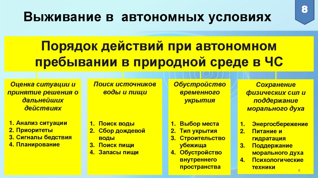 2. Порядок действий при автономном пребывании в природной среде в ЧС.