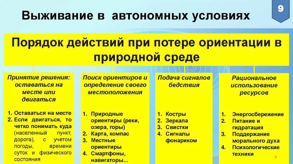 Изучить порядок действий при потере ориентации, источник