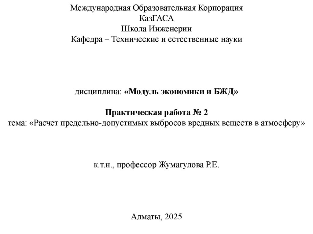 тема: «Расчет предельно-допустимых выбросов вредных веществ в атмосферу»
