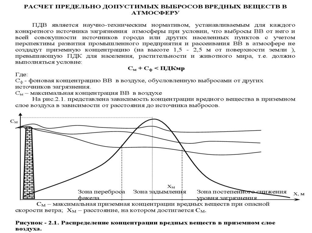 На рис.2.1. представлена зависимость концентрации вредного вещества в приземном