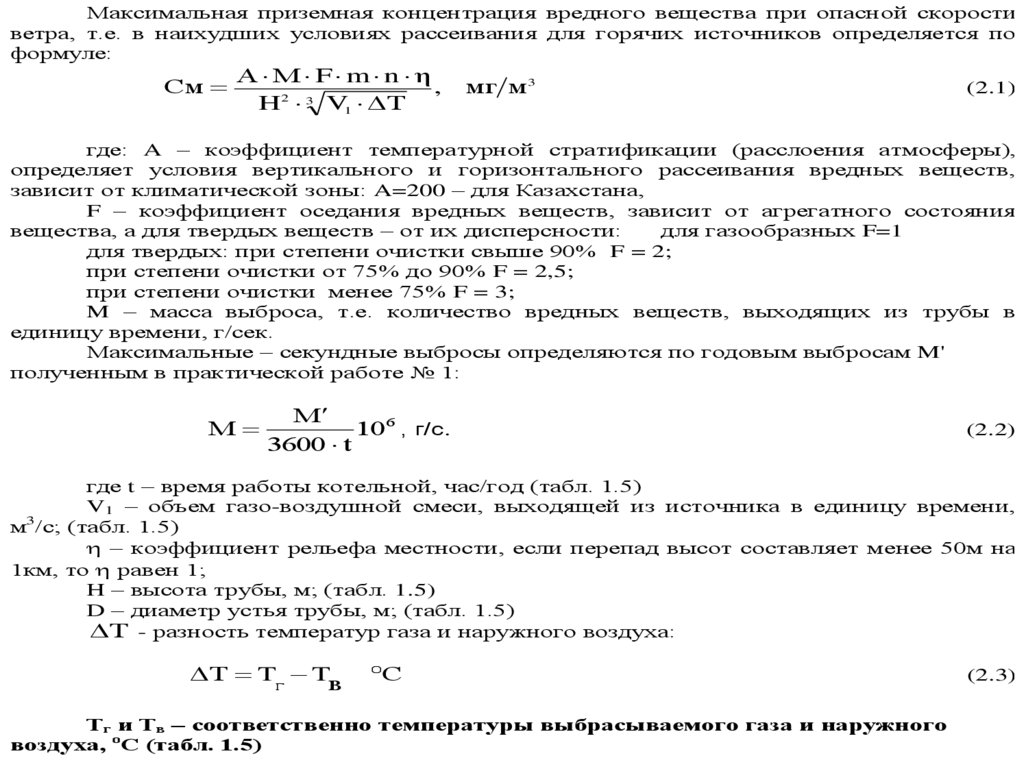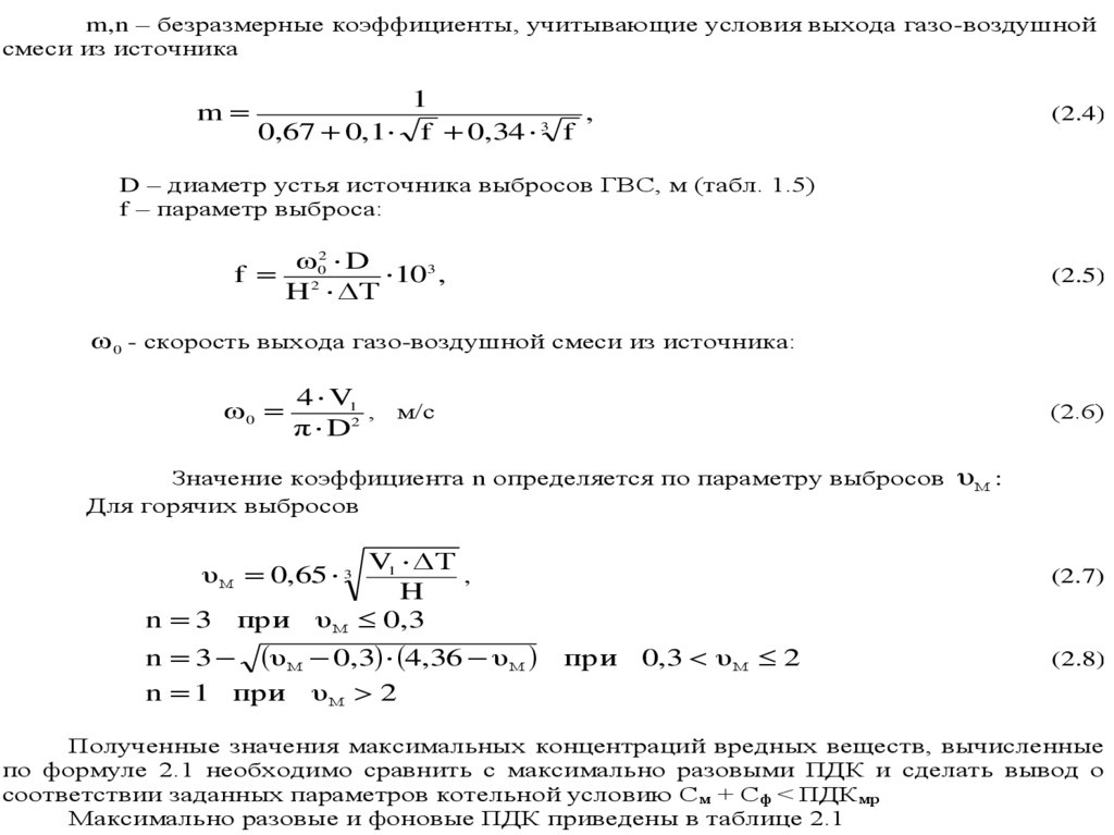 по формуле 2.1 необходимо сравнить с максимально разовыми ПДК и сделать вывод о