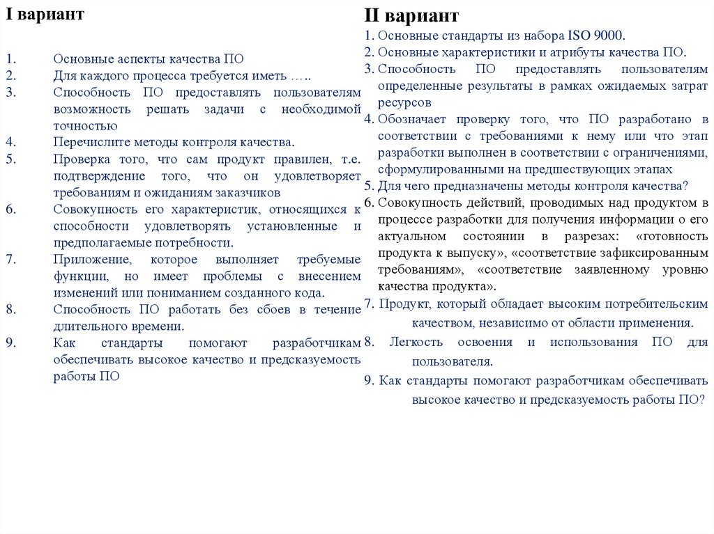 Диктант на темы:Качество ПО и методы его контроля.