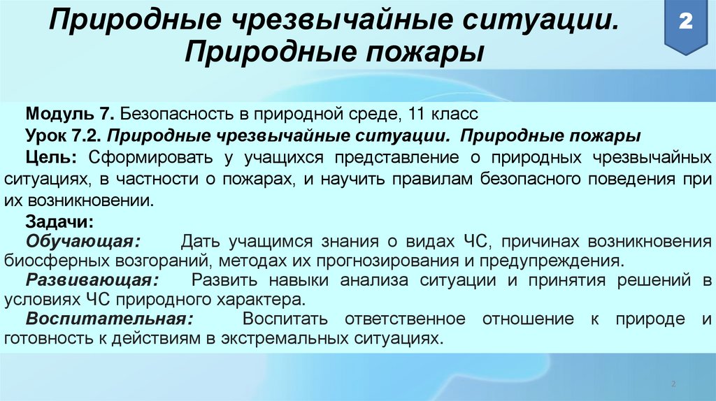 Урок 7.2. Природные чрезвычайные ситуации. Природные пожары
