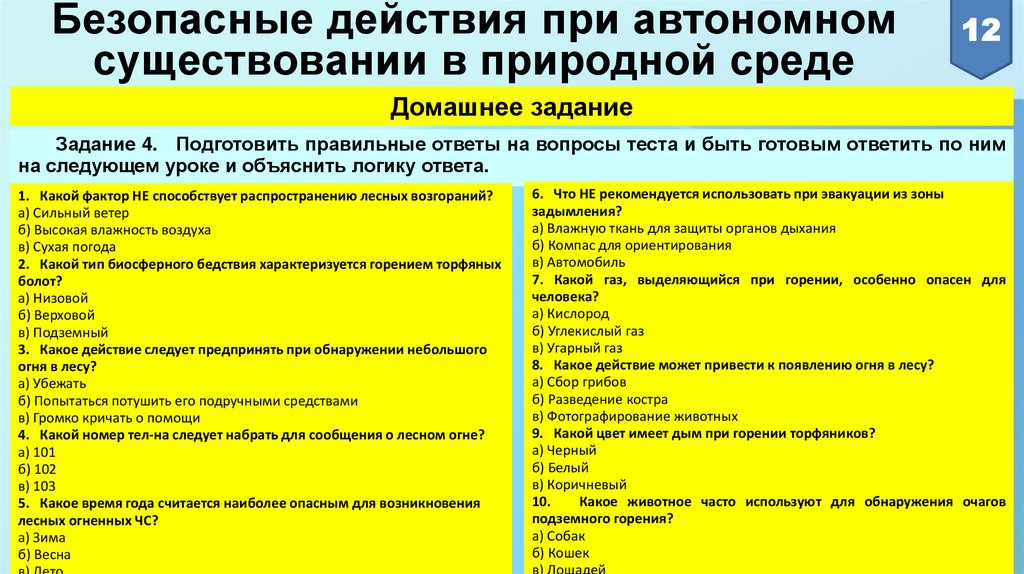 Задание 4. Подготовить правильные ответы на вопросы теста и быть готовым ответить по ним