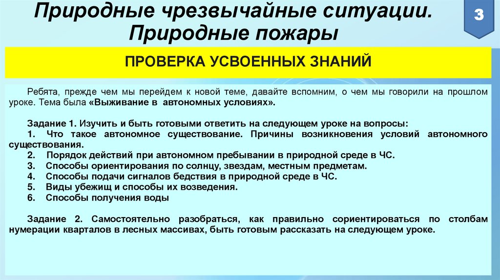 Наш урок посвящен теме «Природные чрезвычайные ситуации. Природные пожары».