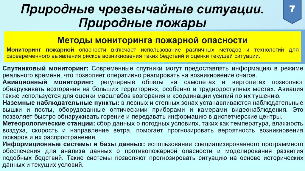 Мониторинг пожарной опасности включает использование различных методов и технологий для
