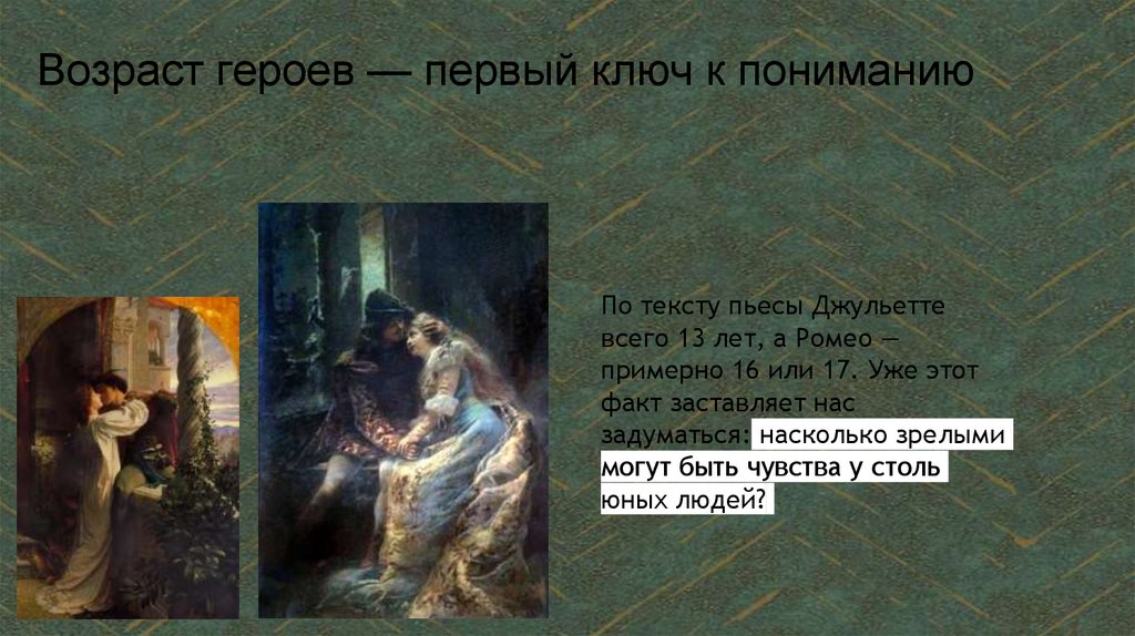 Возраст героев — первый ключ к пониманиюПо тексту пьесы Джульетте
