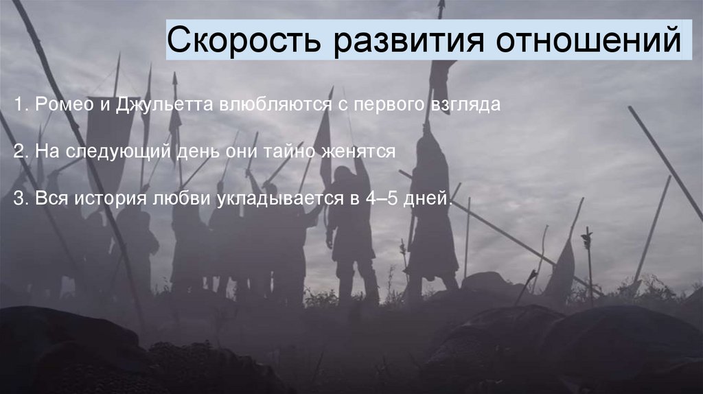 Скорость развития отношений1. Ромео и Джульетта влюбляются с первого взгляда
