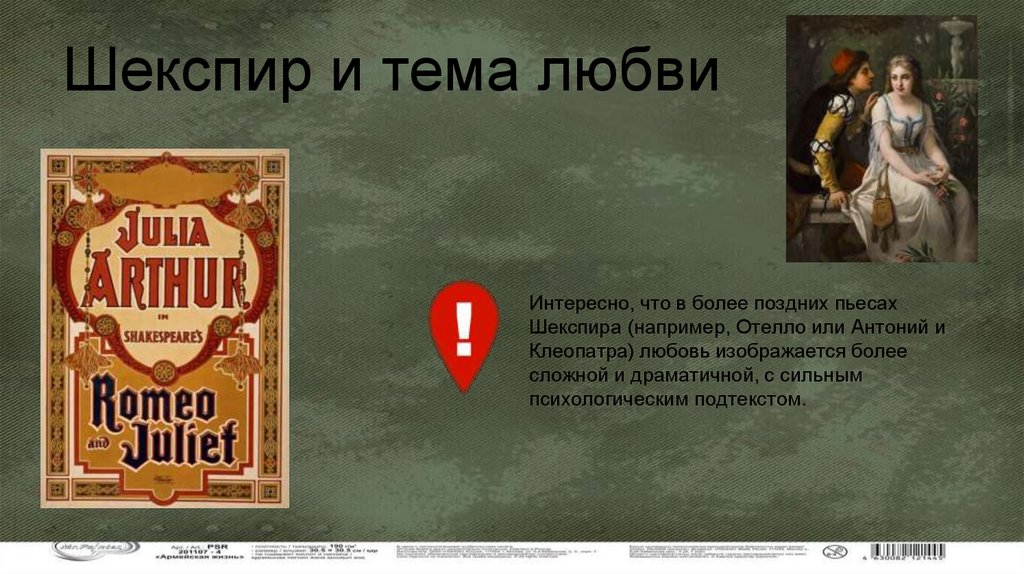 Шекспир и тема любвиИнтересно, что в более поздних пьесах