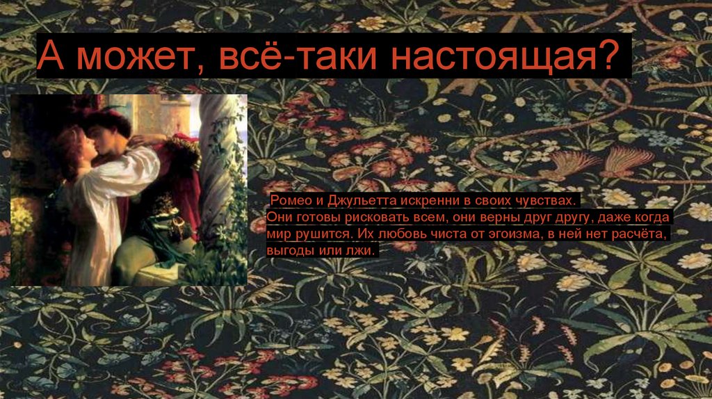 А может, всё-таки настоящая?Ромео и Джульетта искренни в своих чувствах.