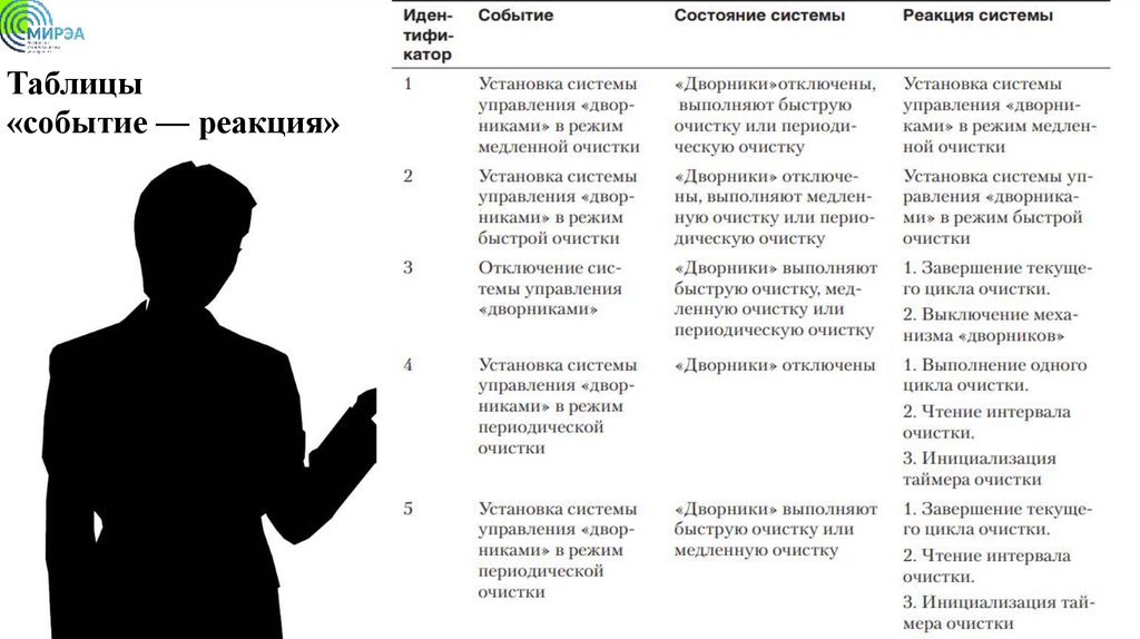 таблицы событий и реакций