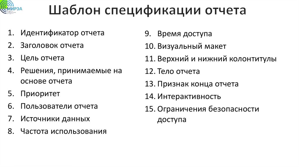 1. Идентификатор отчета2. Заголовок отчета