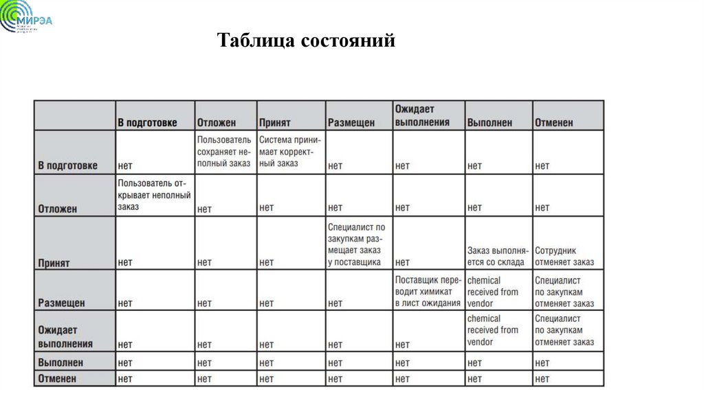Таблица состояний9.