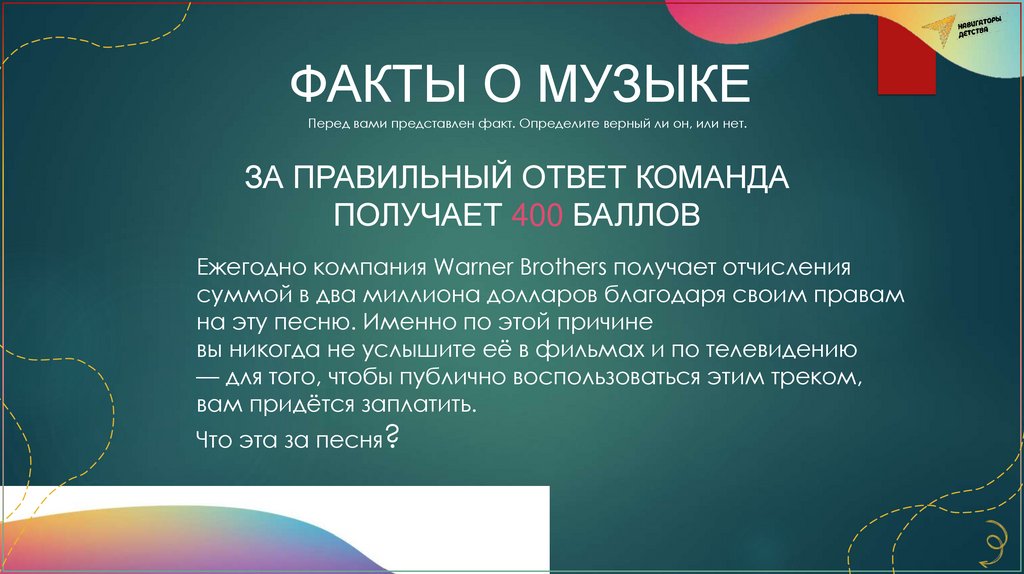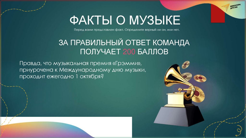 ФАКТЫ О МУЗЫКЕПеред вами представлен факт. Определите верный ли он, или нет.