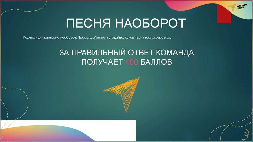 ПЕСНЯ НАОБОРОТКомпозиция записана наоборот. Прослушайте ее и угадайте, какая песня там скрывается.