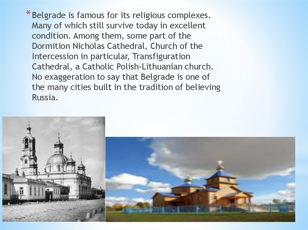 * Belgrade is famous for its religious complexes.Many of which still survive today in excellent