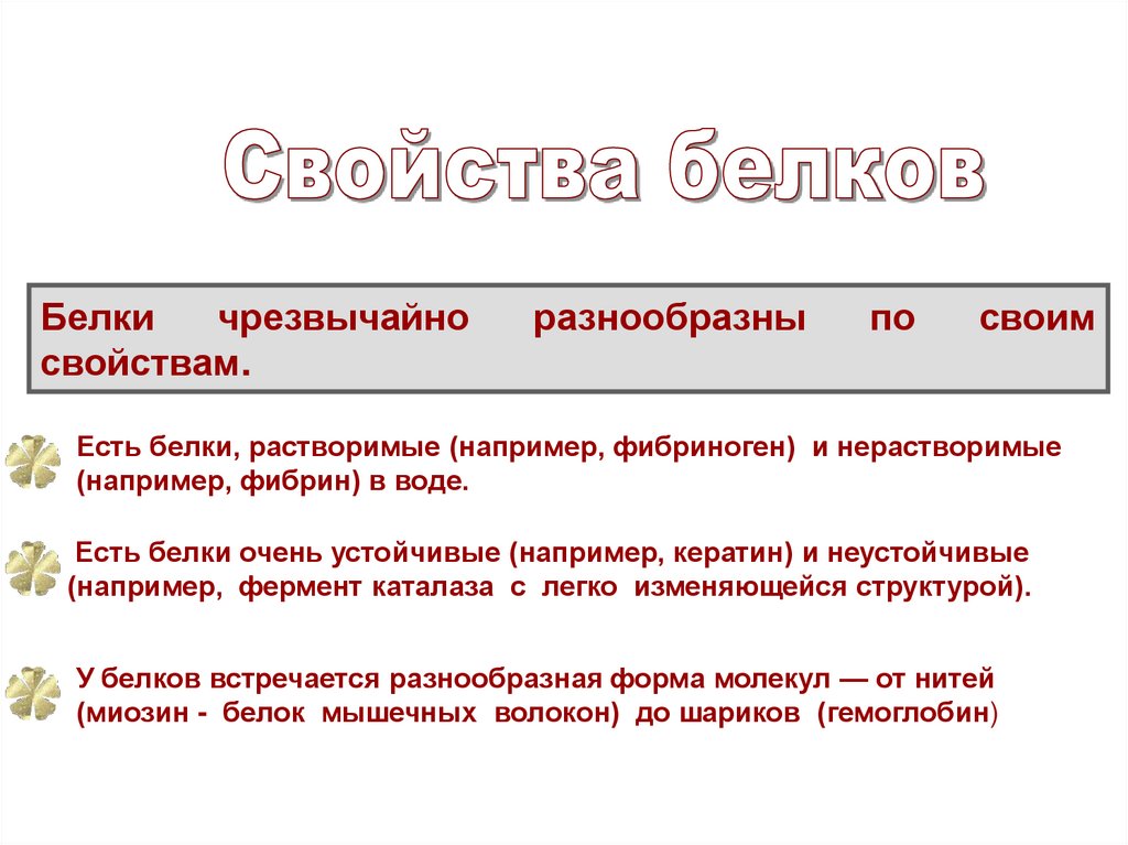 (миозин - белок мышечных волокон) до шариков (гемоглобин)