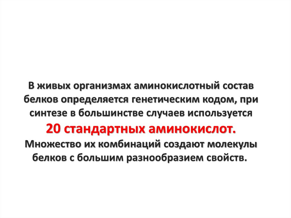 В живых организмах аминокислотный составбелков определяется генетическим кодом, при