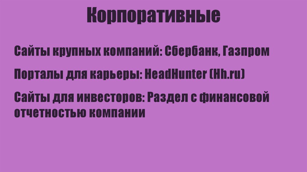 КорпоративныеСайты крупных компаний: Сбербанк, Газпром