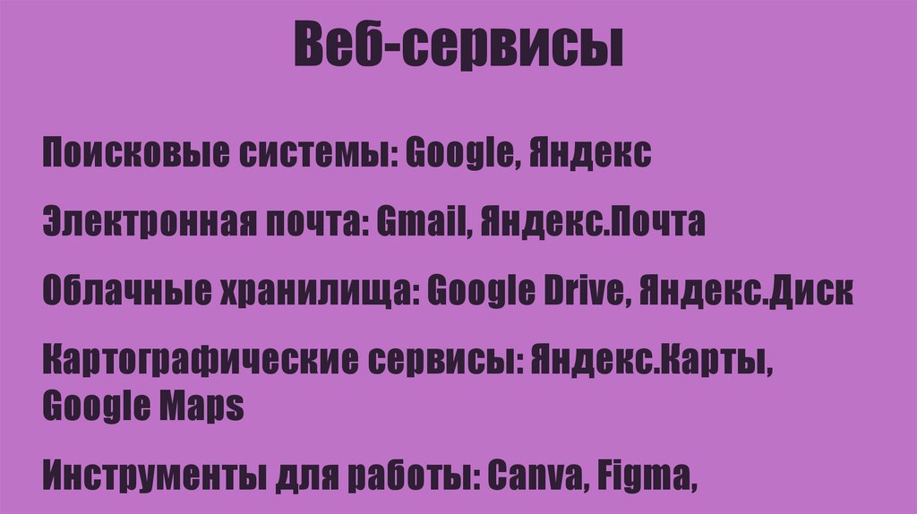 Веб-сервисыПоисковые системы: Google, Яндекс